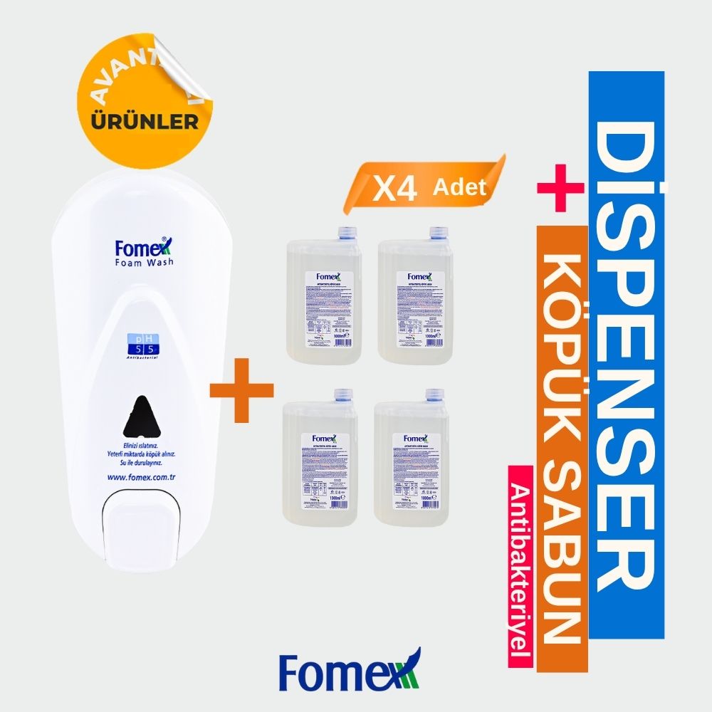 F113 Antibakteriyel Köpük Sabun 1000 ml 4 Adet + F210 Fomex Köpük Sabun Aparatı 1000 ml